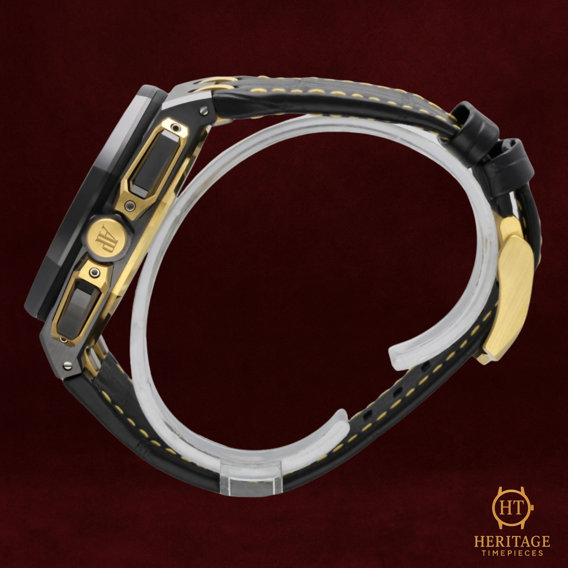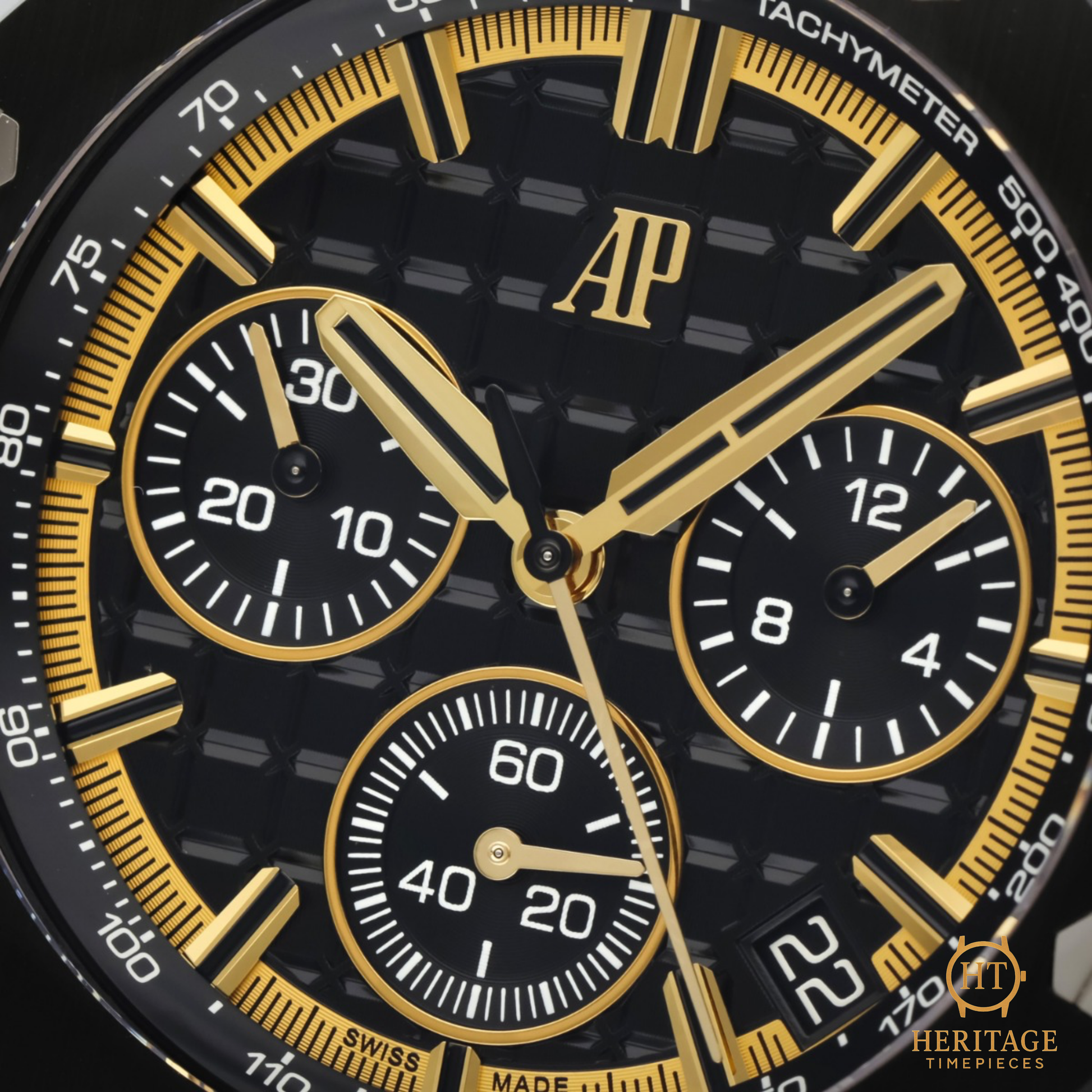 Black ceramic bezel with AP signature polished bevels and exposed screws
