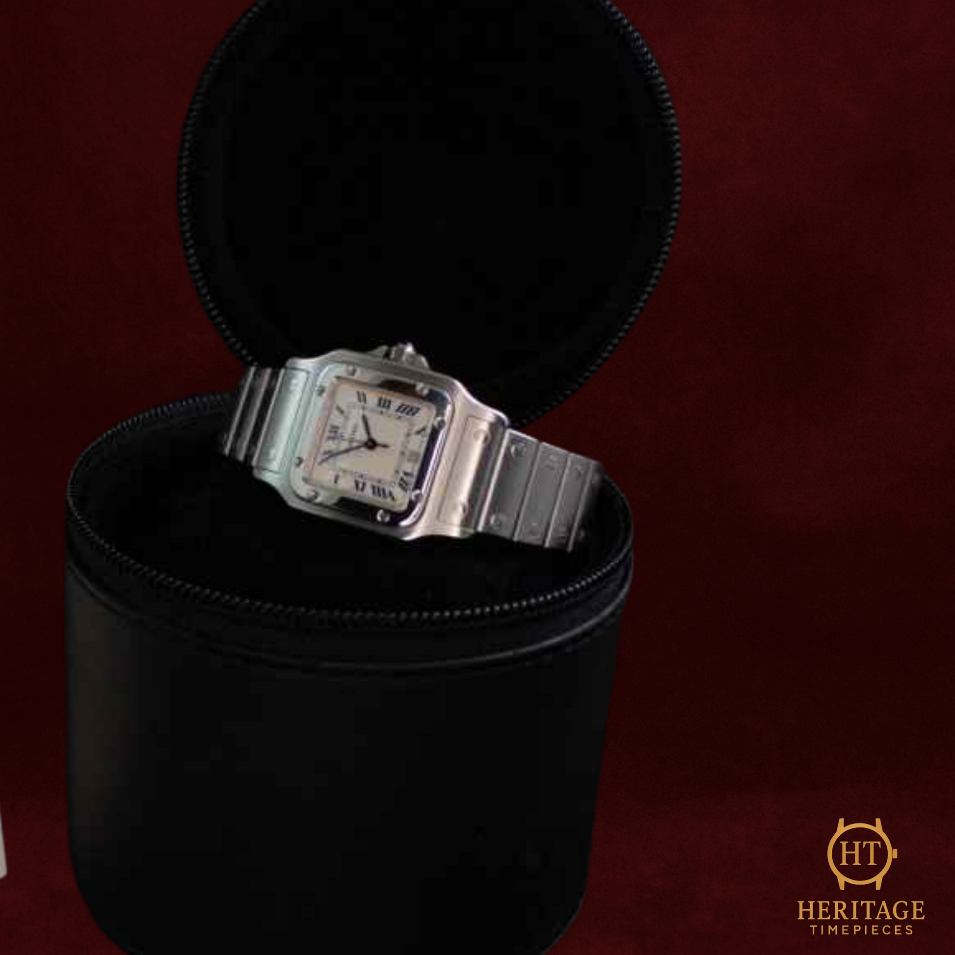 The Cartier Santos is one of the most significant designs in horological history — introduced in 1904 as one of the first wristwatches ever created, originally designed for the aviator Alberto Santos-Dumont. Its square case, exposed screws, and clean Roman dial have since become enduring signatures of Cartier’s elegant, architectural aesthetic.
