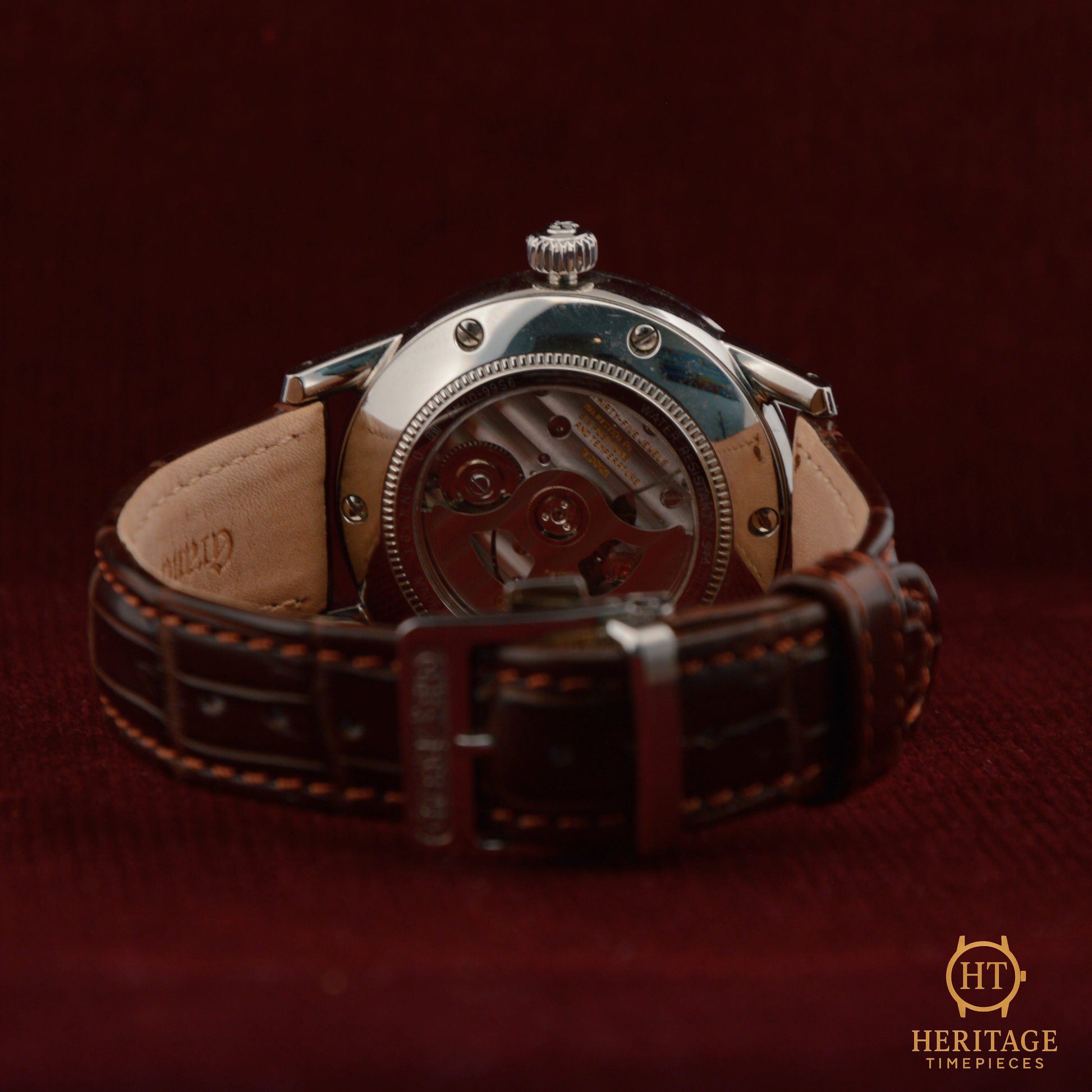 39.5 mm stainless steel, Zaratsu polished surfaces, exhibition sapphire caseback
