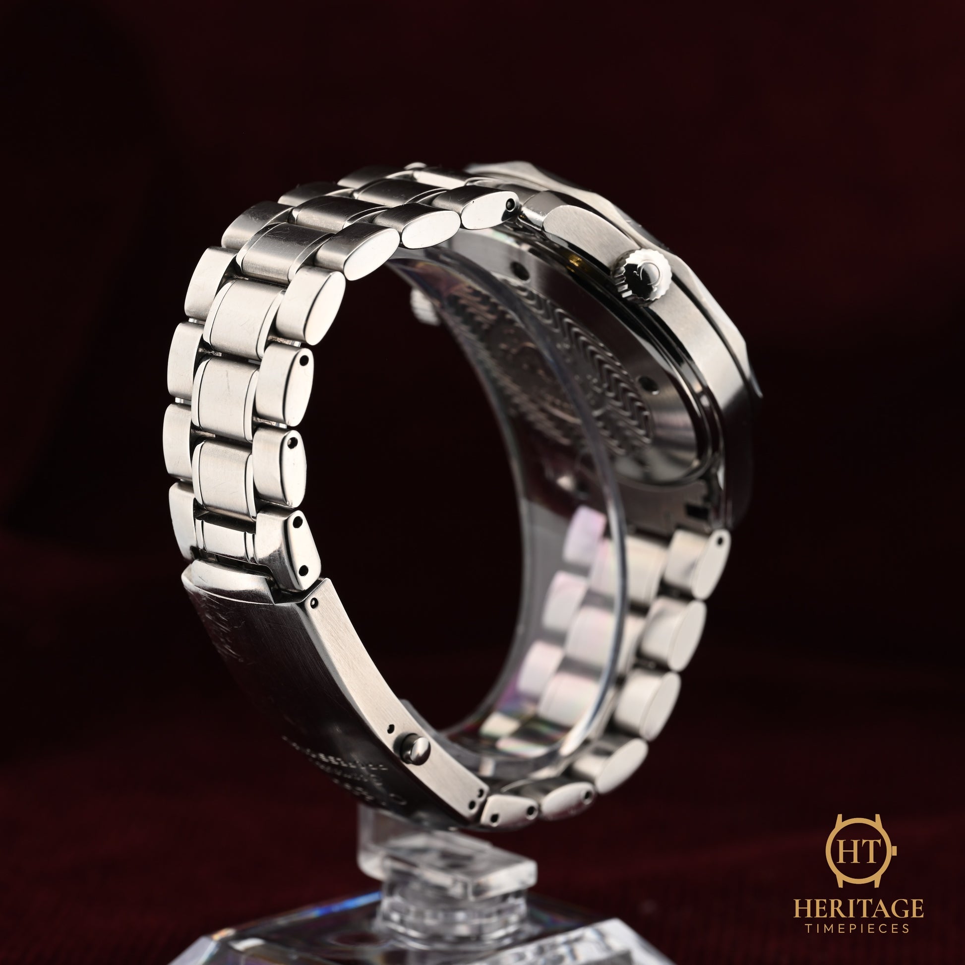 Full set with original Omega box, warranty card, booklets, additional bracelet links, and Heritage Timepieces certificate of authenticity