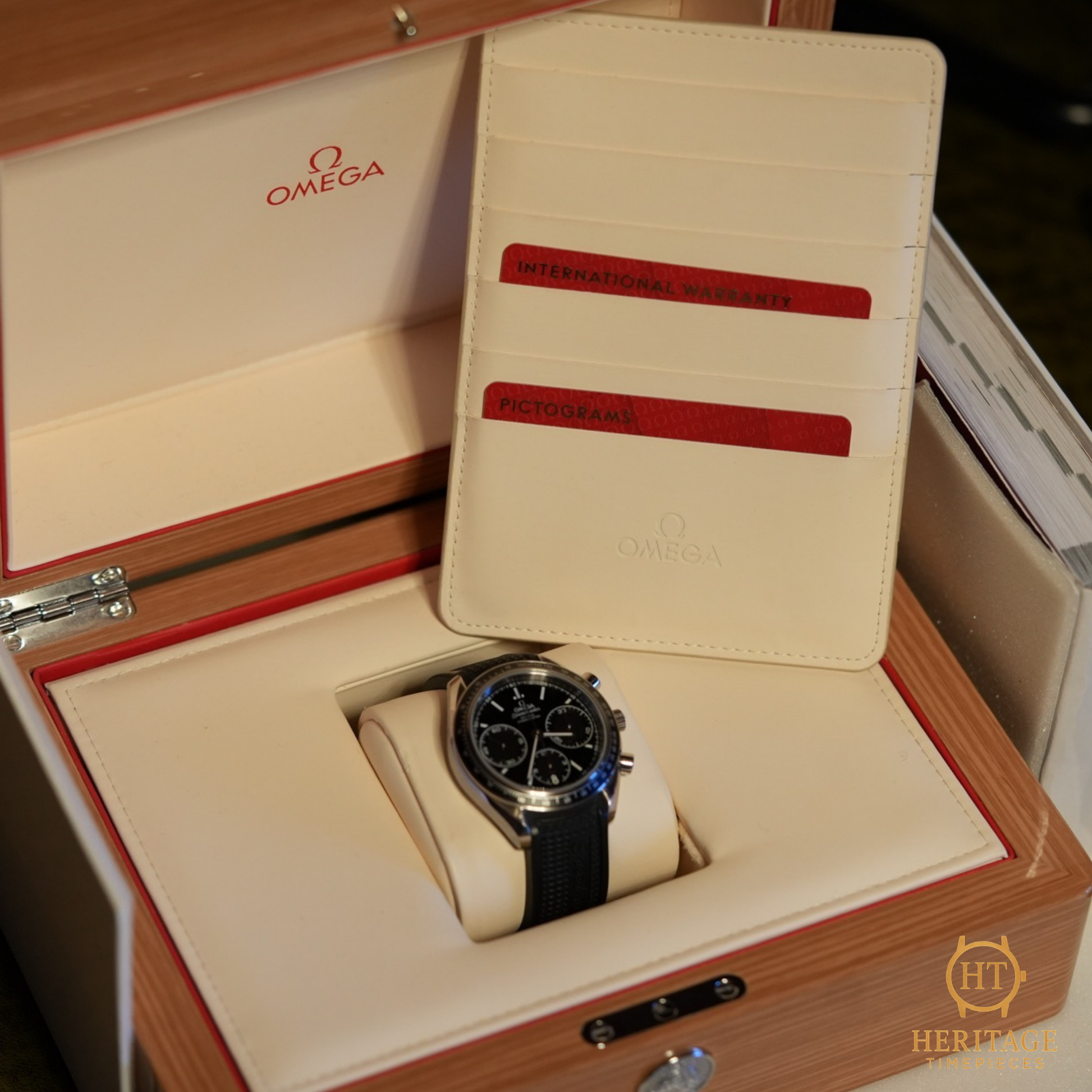 Delivered on its original Omega rubber strap with folding clasp, this Speedmaster Racing blends sport-focused functionality with refined finishing. A contemporary chronograph with direct lineage to one of the most respected names in modern horology.