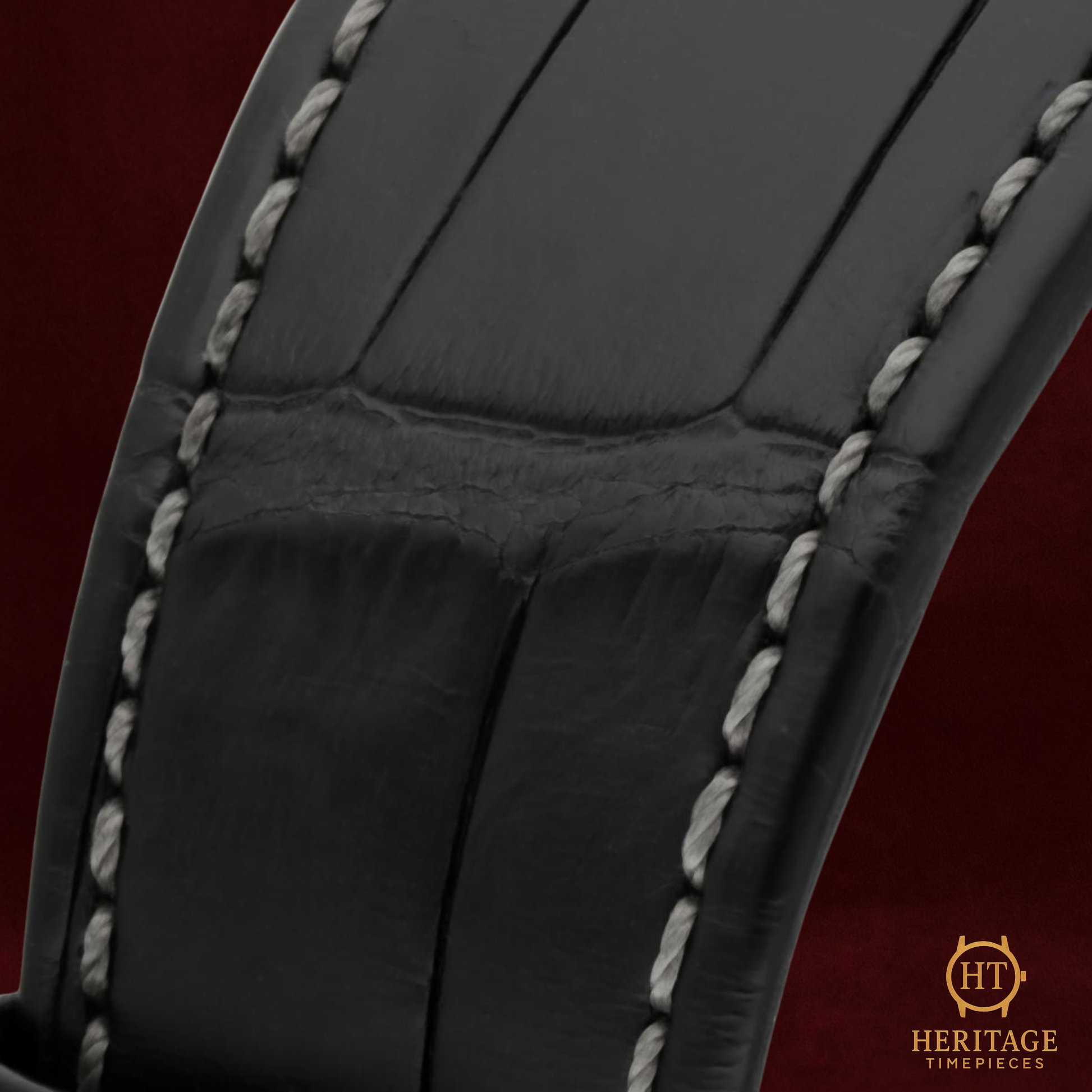 Black alligator strap with stainless-steel deployant clasp