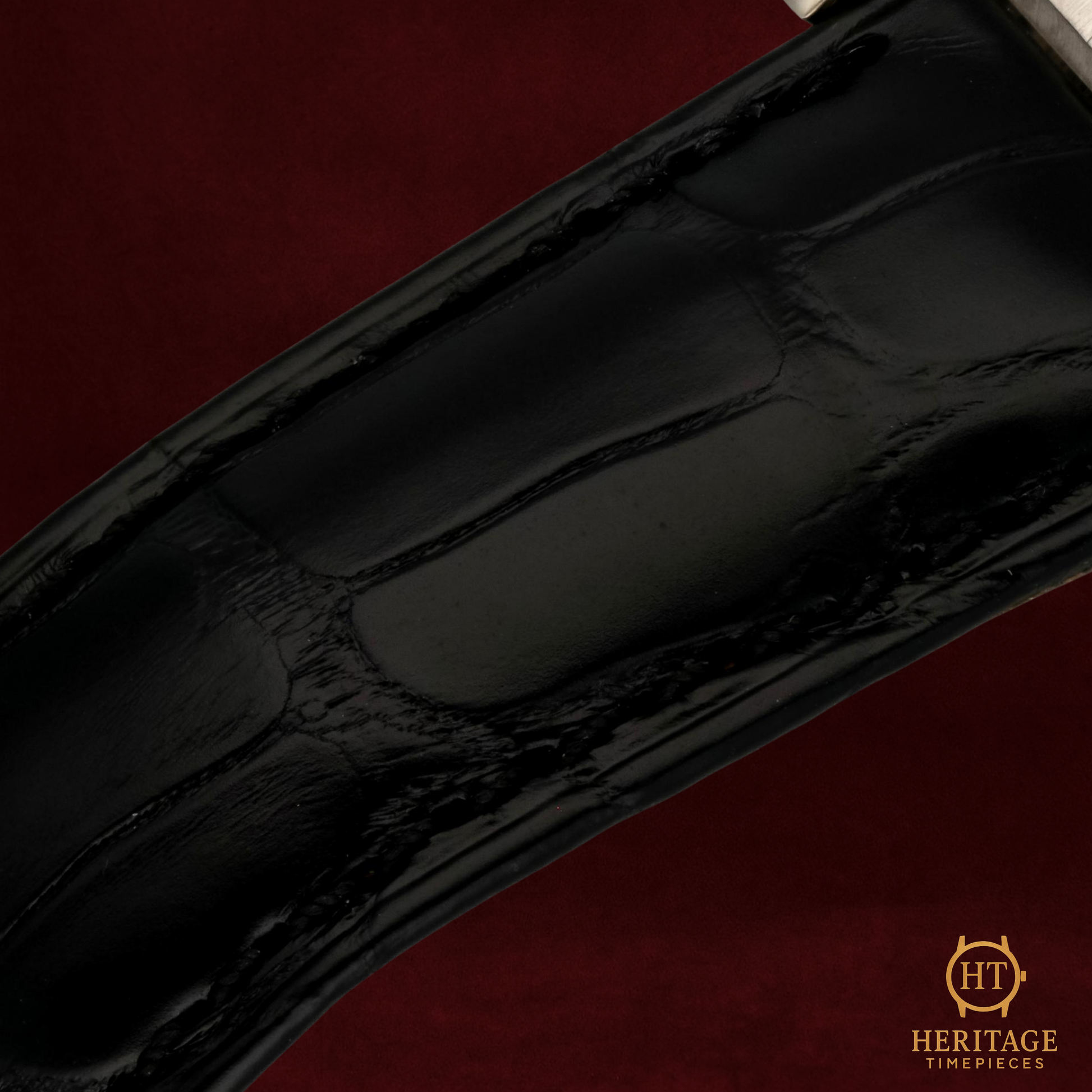 Black alligator leather strap with 18k white gold folding deployant clasp