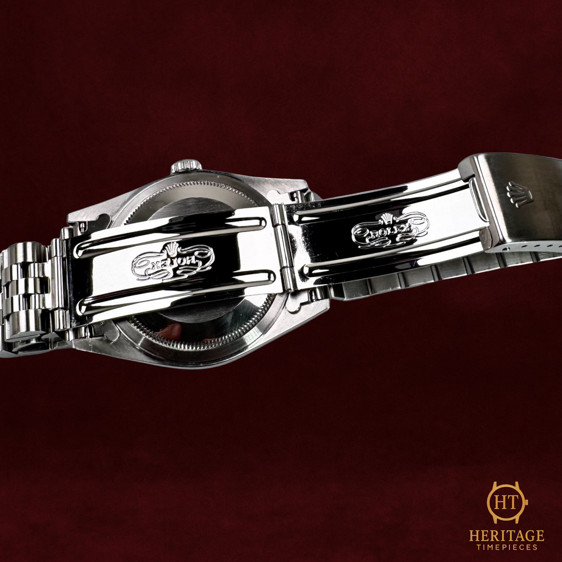 Housed in a 36 mm Oyster case and fitted with the Jubilee bracelet, this Datejust offers timeless proportions, excellent wearability, and unmistakable Rolex identity. It remains a compelling choice for collectors seeking a classic reference with a unique visual twist.