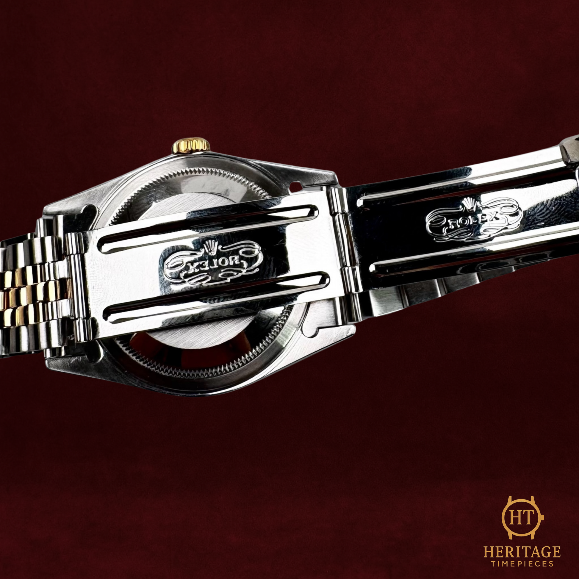 This example, serial R91XXXX from the late 1980s, features a 36 mm stainless steel case with an 18k yellow gold fluted bezel and the elegant Jubilee bracelet. The standout feature is its ivory pyramid dial with applied gold Roman numerals — one of the most distinctive and collectible dial variations of the era. Powered by the calibre 3135, it delivers chronometer-certified precision and enduring reliability. Offered in excellent condition, this piece perfectly captures the Datejust’s balance of sophistication, durability, and understated luxury.