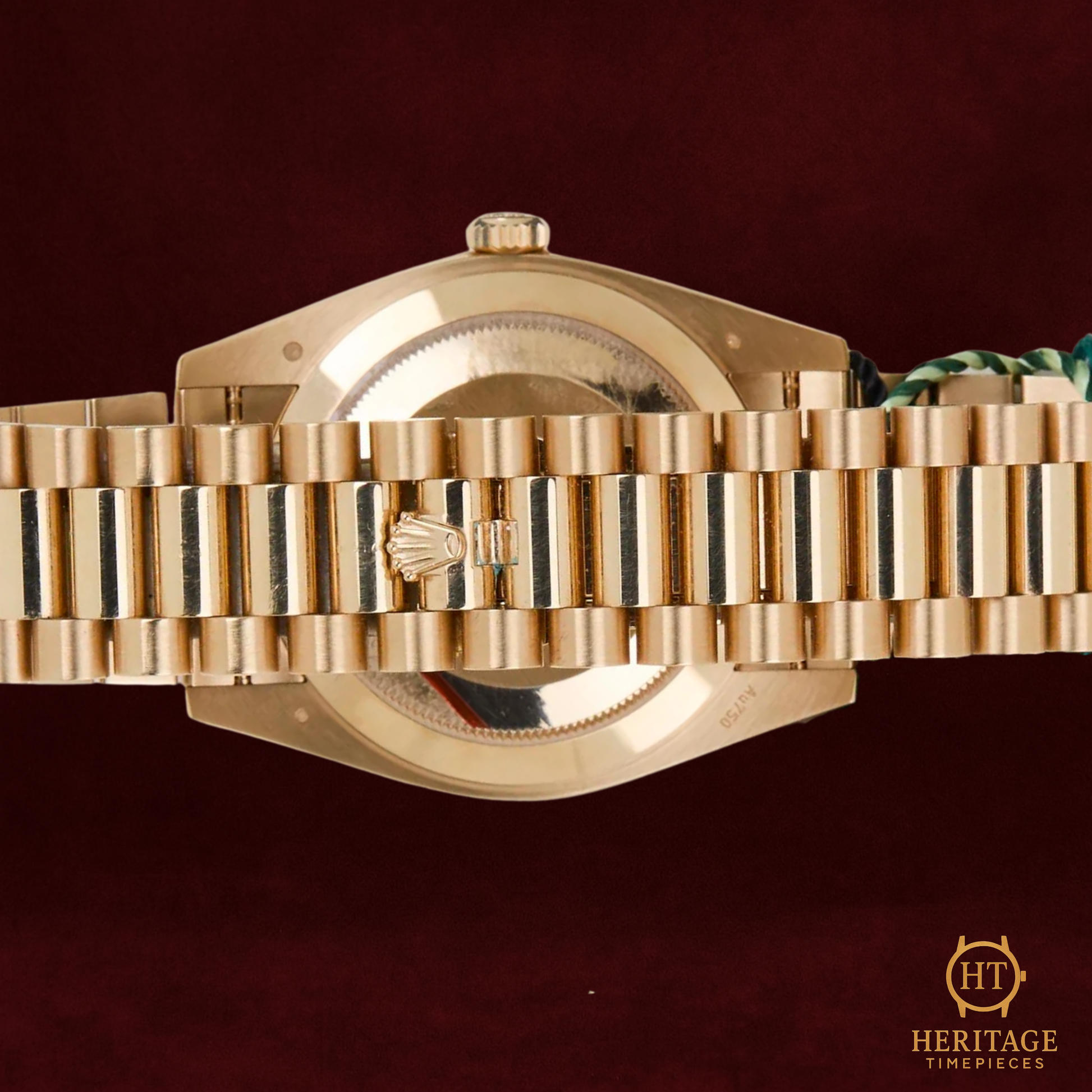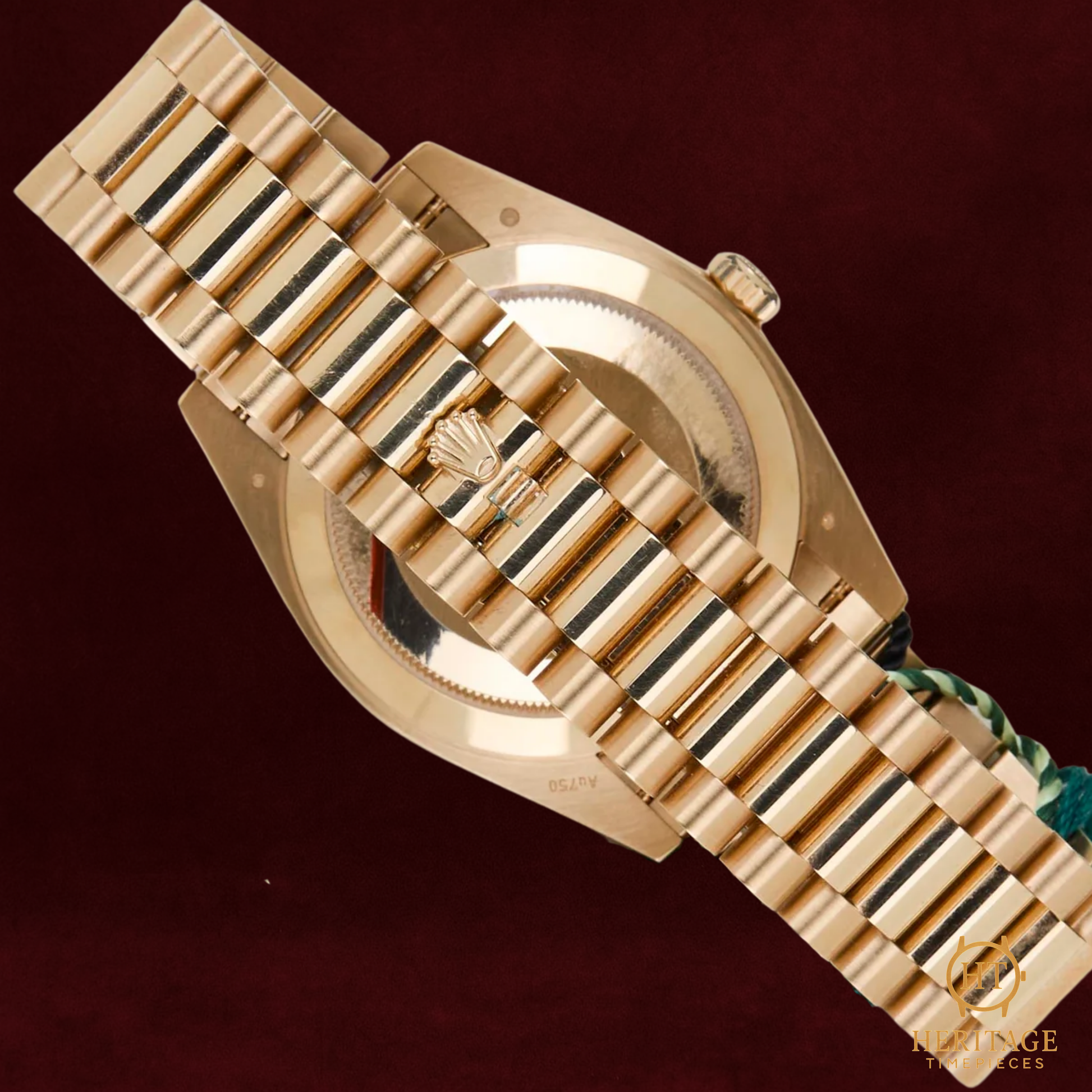 Since its debut in 1956, the Rolex Day-Date has been synonymous with prestige, worn by world leaders, visionaries, and icons of culture. The modern Day-Date 40, introduced in 2015, continues that tradition of refinement while incorporating Rolex’s most advanced engineering — a perfect fusion of heritage and innovation.