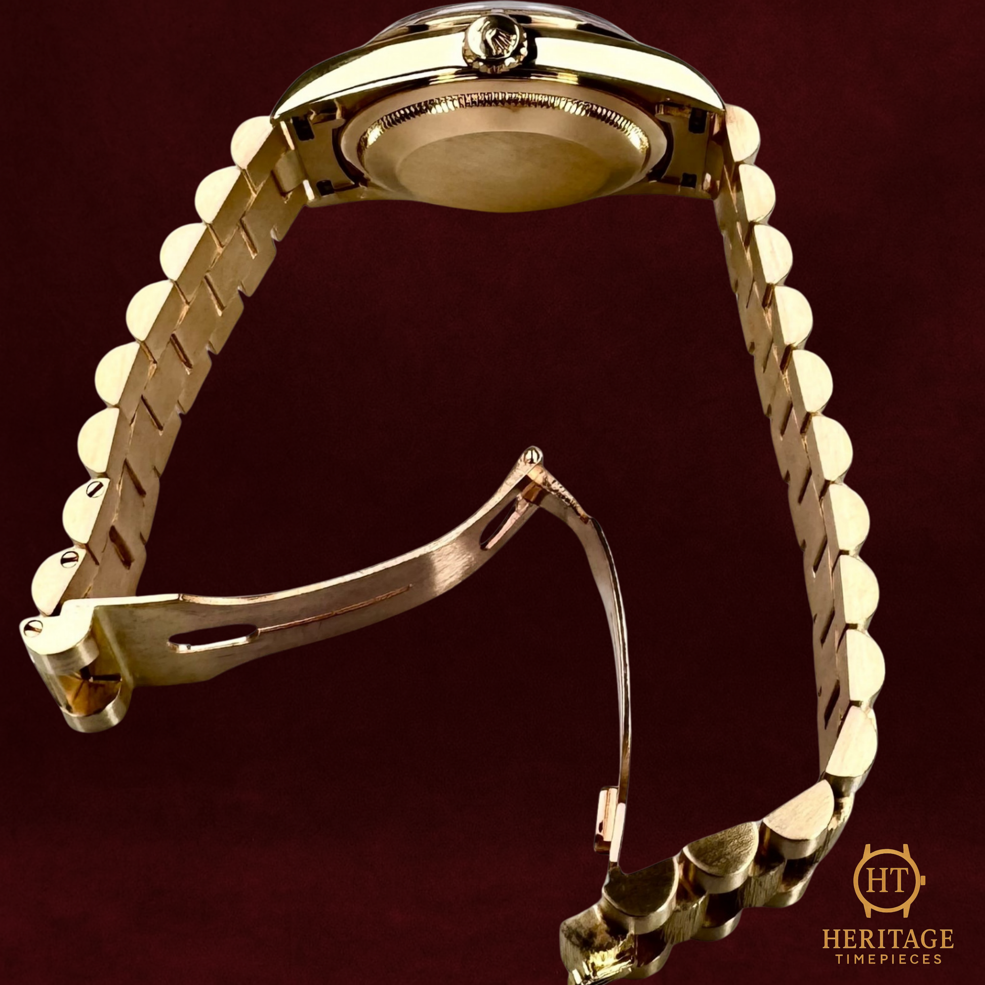 The Rolex Day-Date, introduced in 1956, has long been regarded as the pinnacle of Rolex craftsmanship — the first watch to display both the date and the day spelled out in full. Known universally as the “President’s Watch,” it has been worn by world leaders, captains of industry, and cultural icons alike. The reference 18248, launched in the late 1980s, is one of the most distinctive and collectible iterations of the Day-Date line. Featuring the calibre 3155 with the double quickset function, sapphire crystal, and rare dial variants, it represents the perfect balance of modern utility and vintage character.