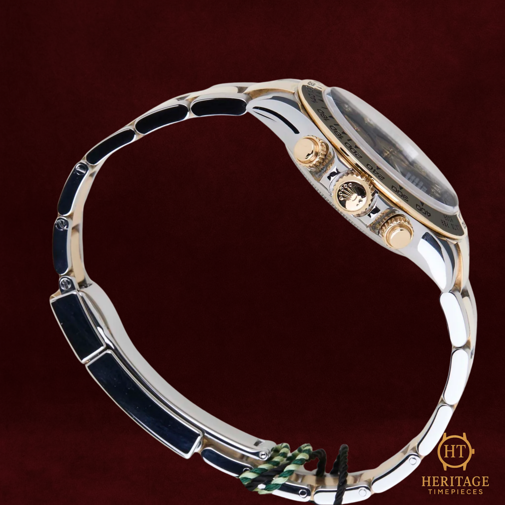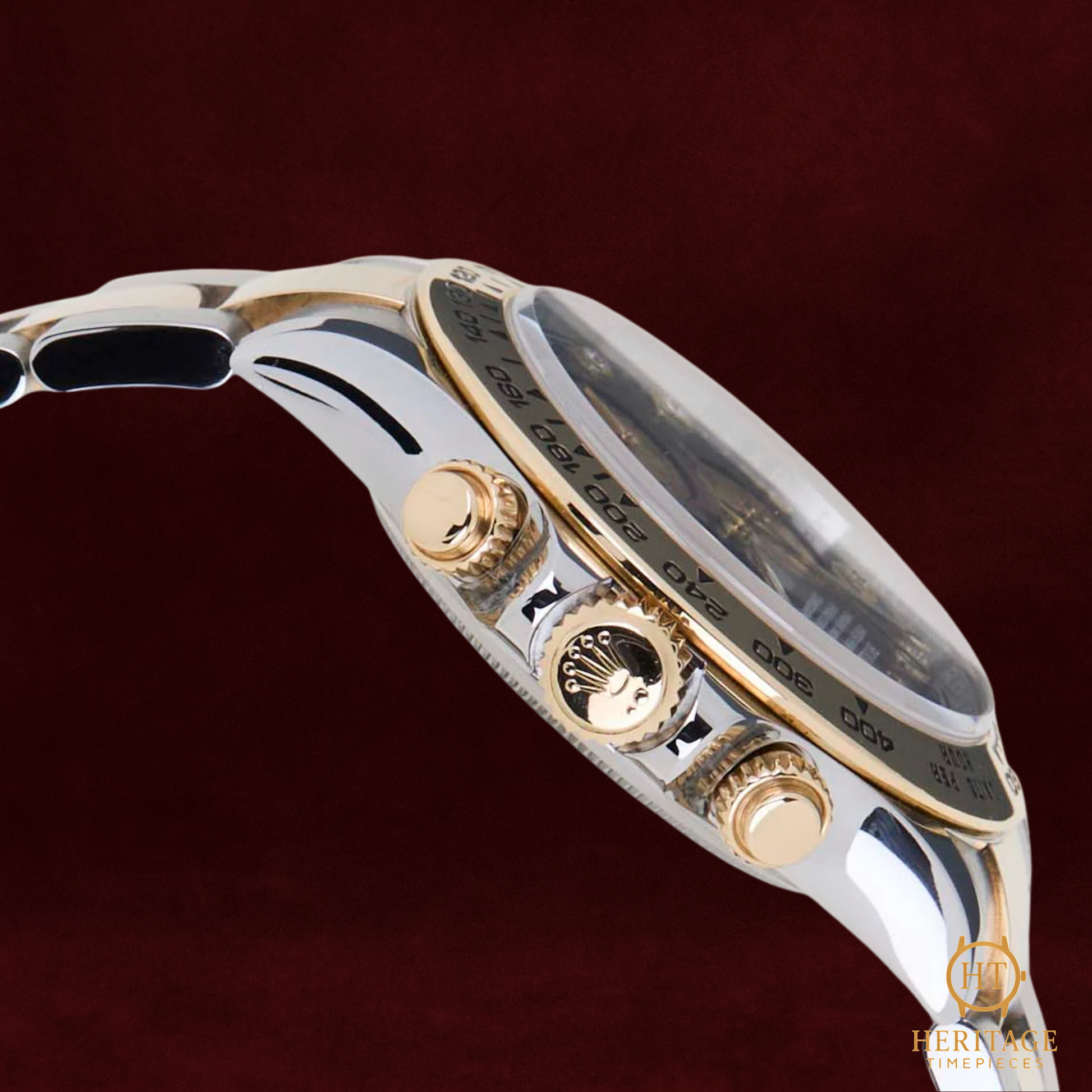 The Rolex Cosmograph Daytona has been the brand’s flagship chronograph since its introduction in 1963, designed with precision motorsport timing in mind. Over the decades, it has grown beyond its tool-watch roots to become one of the most luxurious and sought-after Rolex models. The reference 116503, introduced in 2016, updated the classic two-tone Daytona with a refined case, solid-link bracelet, and a broader bezel, all while retaining the calibre 4130 at its heart.