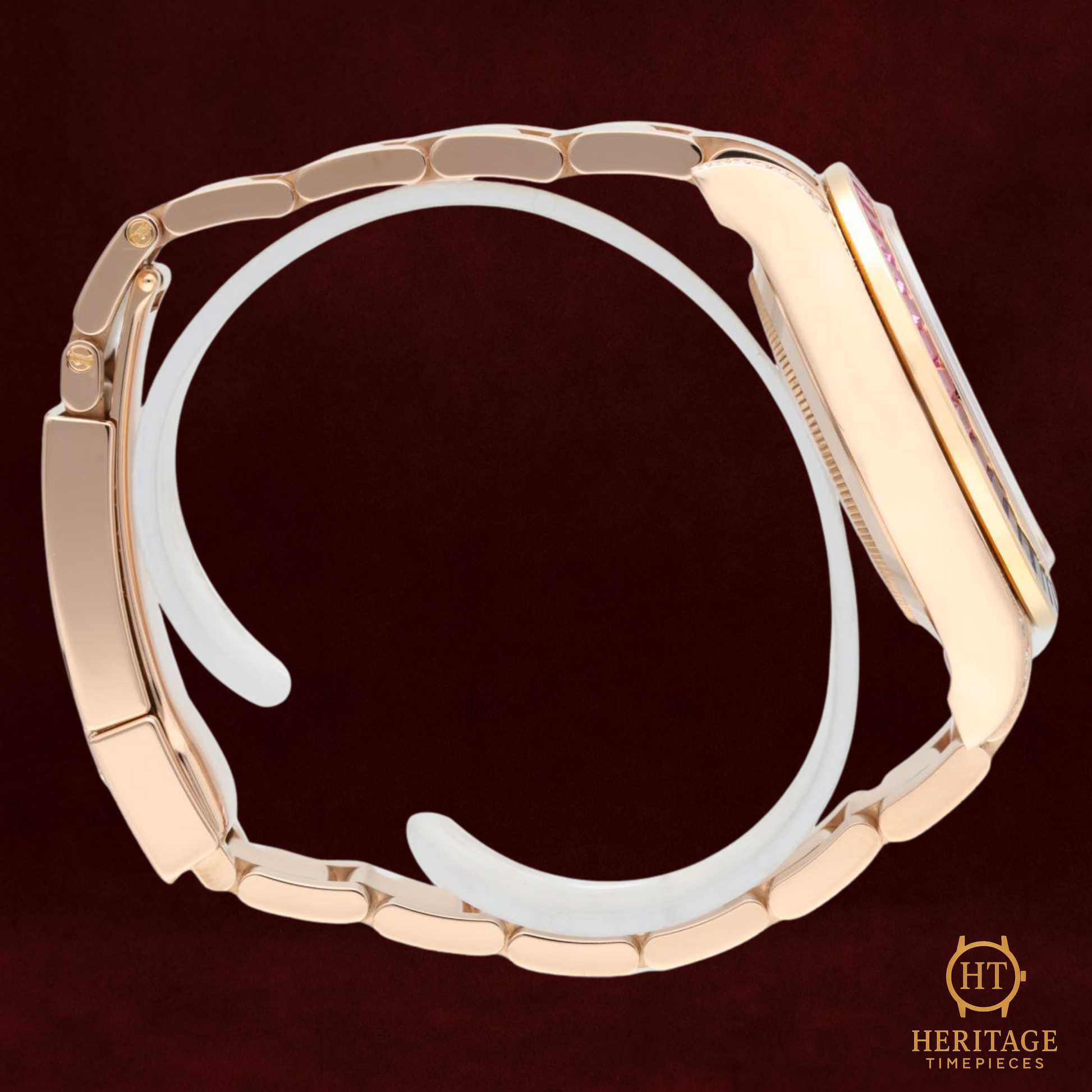 18k Everose gold bezel with custom-set rainbow gemstones (aftermarket)