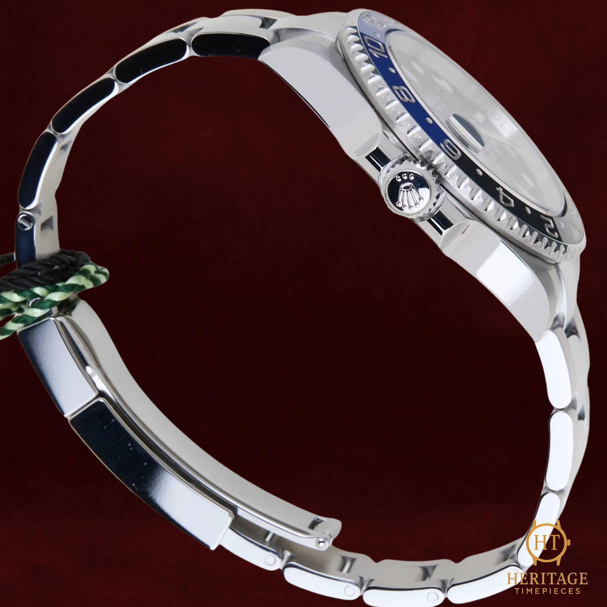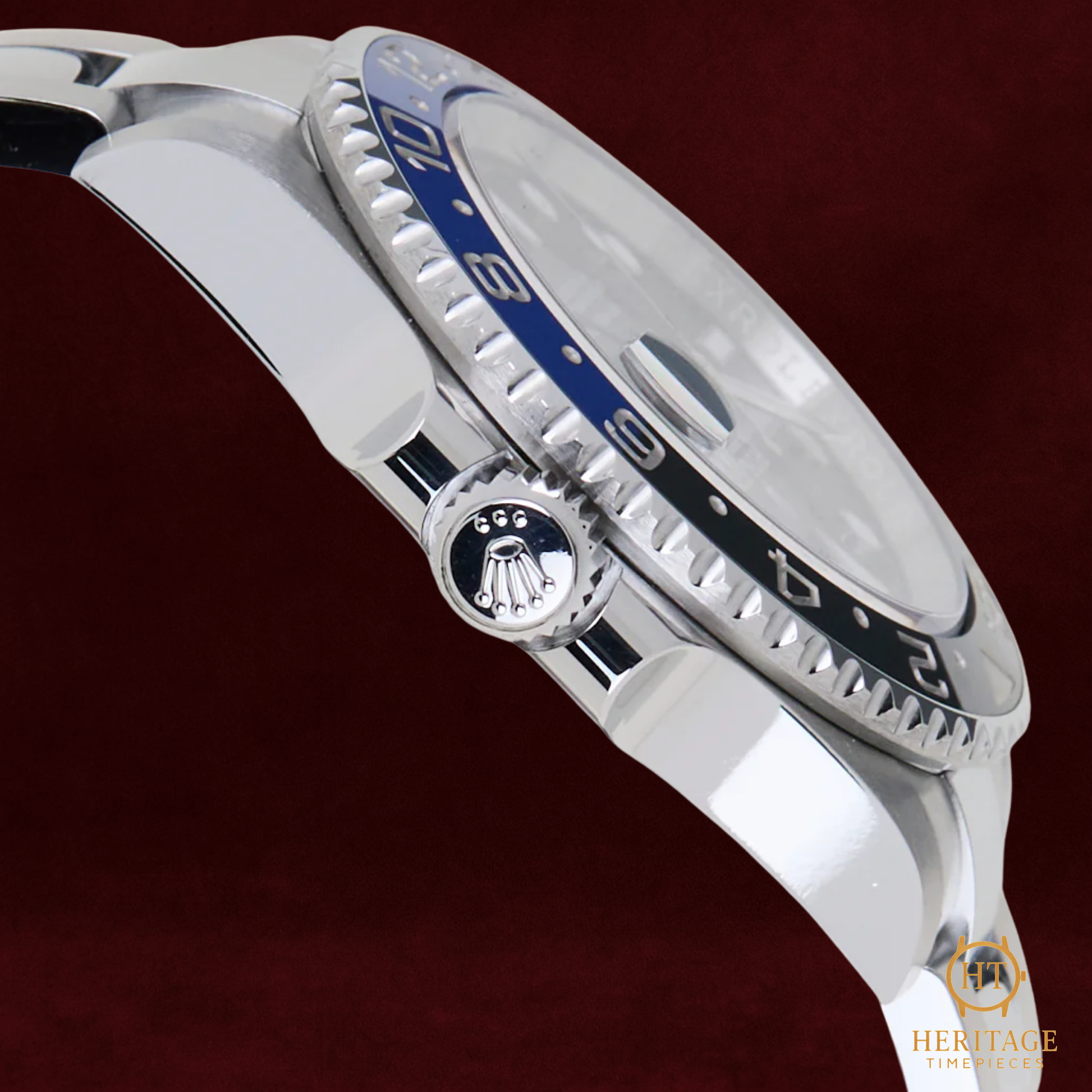 This 2023 example, presented in mint condition, features a 40 mm Oystersteel case paired with a matching Oyster bracelet, and the iconic bi-color ceramic bezel insert representing day and night. The black lacquer dial offers superb legibility, enhanced by Chromalight luminescence and the signature blue 24-hour GMT hand. Inside, the Calibre 3285movement delivers exceptional performance, offering a 70-hour power reserve and resistance to shocks and magnetism thanks to Rolex’s Chronergy escapement. Offered with full box and papers and under international Rolex warranty until April 2028, this piece embodies the perfect fusion of precision, durability, and cosmopolitan style.