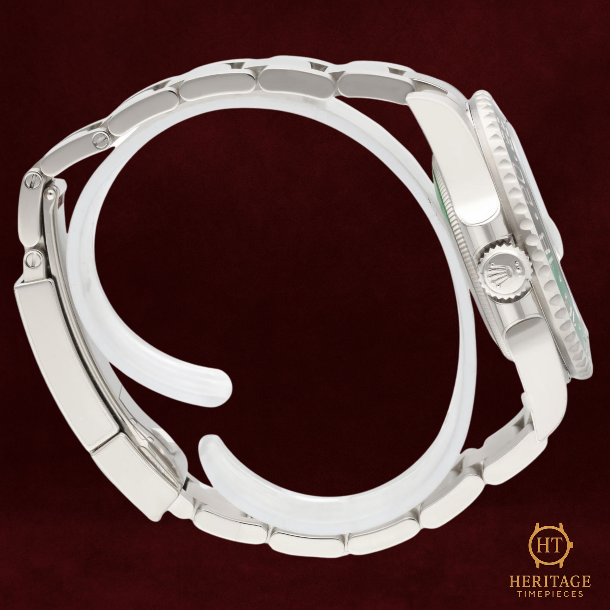 The Rolex GMT-Master II 126729VTNR represents one of the most unconventional and striking iterations of the GMT-Master lineage. Crafted entirely from 18k white gold and designed in the rare left-handed crown configuration, this reference stands apart both aesthetically and technically. Released as part of the modern expansion of Rolex’s travel-time lineup, the VTNR series pushes the GMT-Master identity into new territory through its reversed layout and vivid green dial.