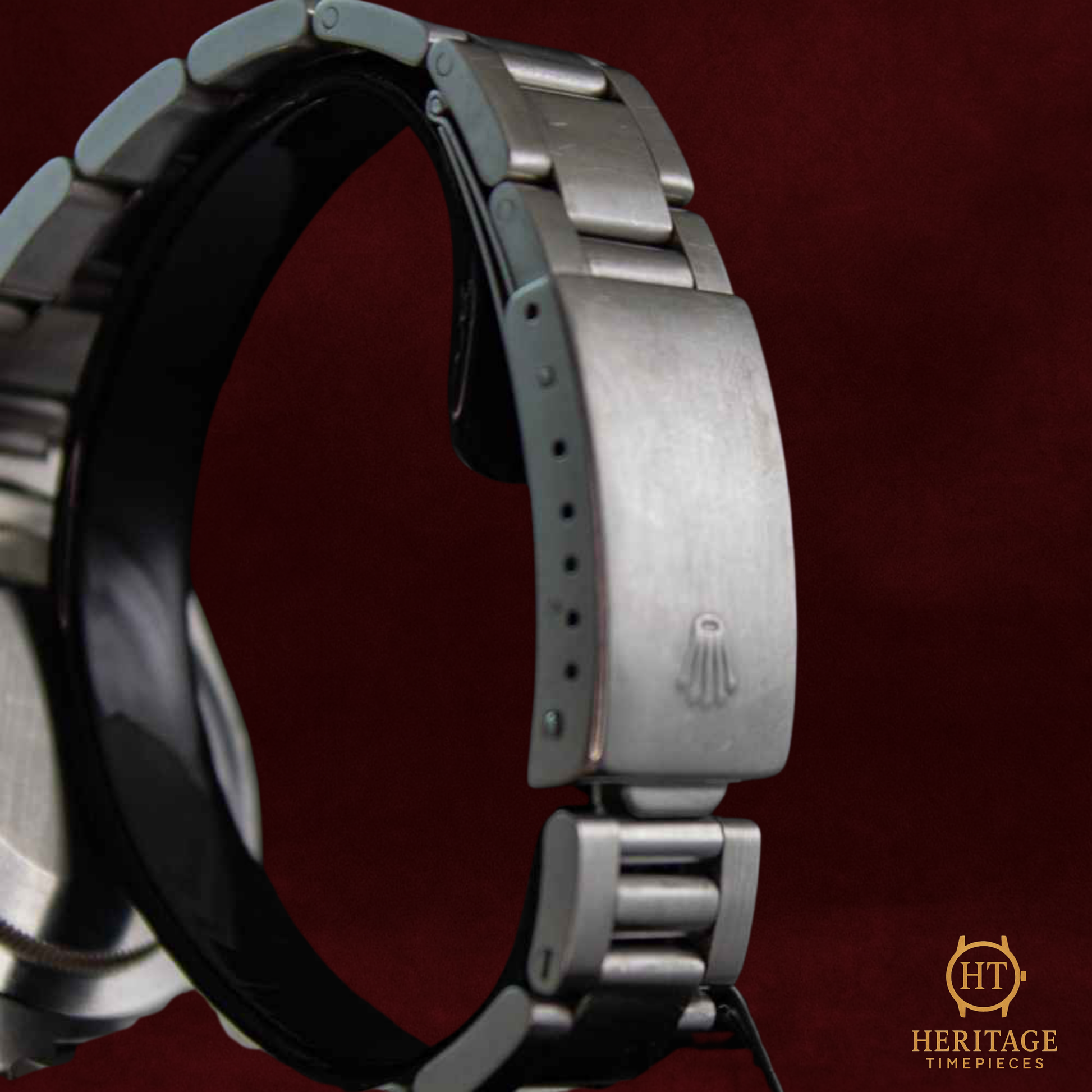 This 1986 example showcases the model’s defining features: a 40 mm stainless-steel Oyster case, black dial with luminous hour markers, and the iconic dual-time functionality originally developed for professional pilots. The plexiglass crystal adds the warm, unmistakably vintage character that later sapphire models lack, making the 16750 a favourite among enthusiasts who want both practicality and authentic heritage.