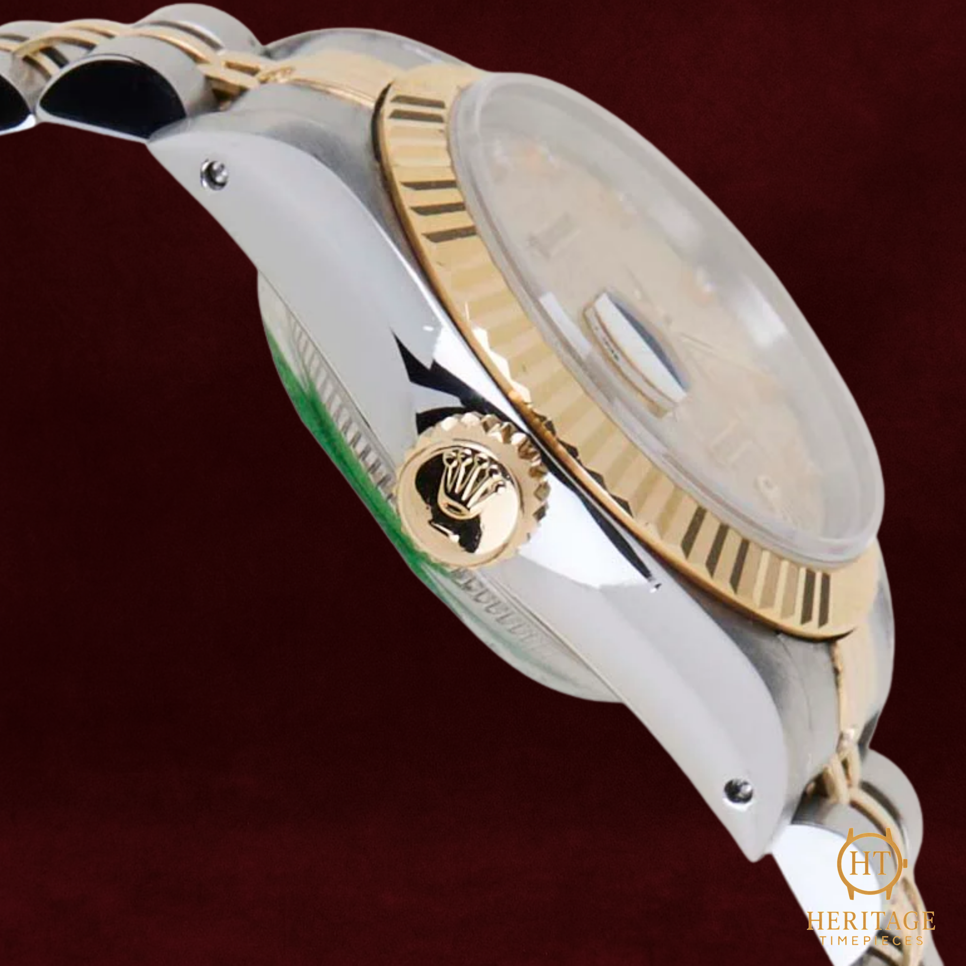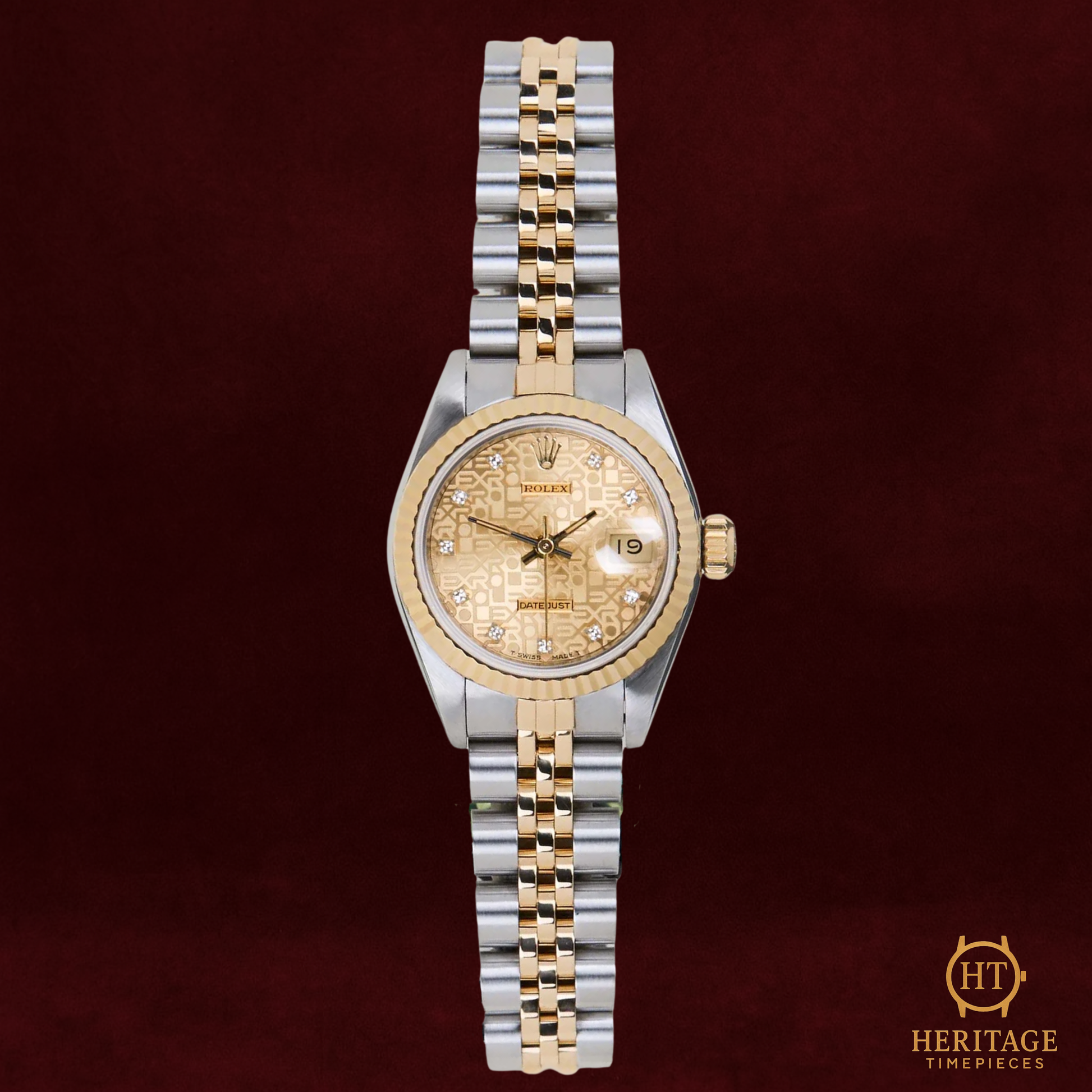 This reference 69173 from 1992 is a particularly exquisite example of the model’s enduring charm. Crafted from stainless steel and 18k yellow gold, it features a 26 mm Oyster case paired with a fluted gold bezel and the beloved Jubilee bracelet. Its factory Jubilee-pattern dial, adorned with diamond hour markers, captures light beautifully, giving the watch both sophistication and subtle glamour. Inside beats the Calibre 2135, a Rolex automatic movement renowned for precision and reliability, powering the signature quickset date at 3 o’clock.