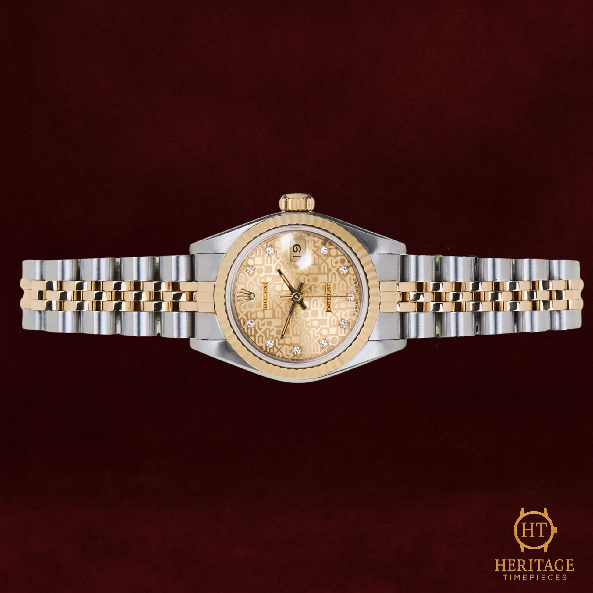 Factory Jubilee-pattern champagne dial with diamond hour markers, gold hands, date at 3 o’clock