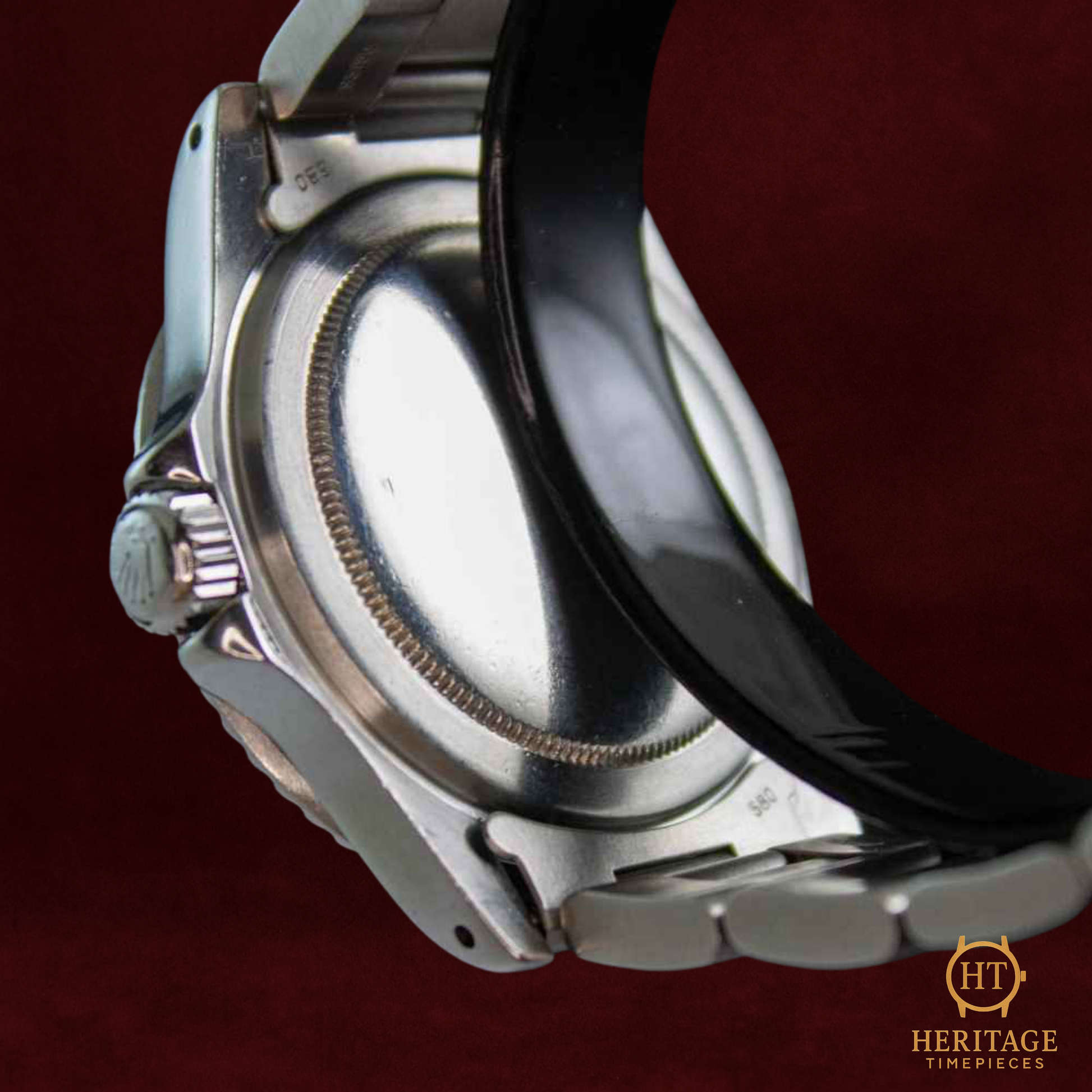 This 1977 example belongs to the final generation of matte-dial 1680s before the transition to glossy dials in the 1980s. It features a matte black tritium dial with white “Submariner” text, serif hour markers, and the characteristic Cyclops date magnifier under its domed Plexiglas crystal. Powered by the Rolex Calibre 1575, it remains one of the most robust and collectible movements of the era.